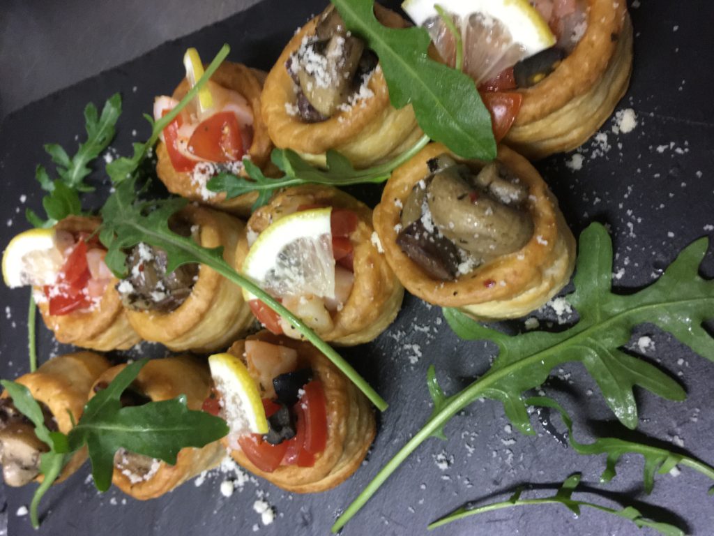 エビとトマト ホロホロドリのハツとマッシュルームのパイ包み食感をお楽しみ下さい